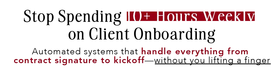 Multiply this by 5, 10, or 15 clients per month and you're spending 40-60 hours doing repetitive administrative work instead of the high-value work you actually love.