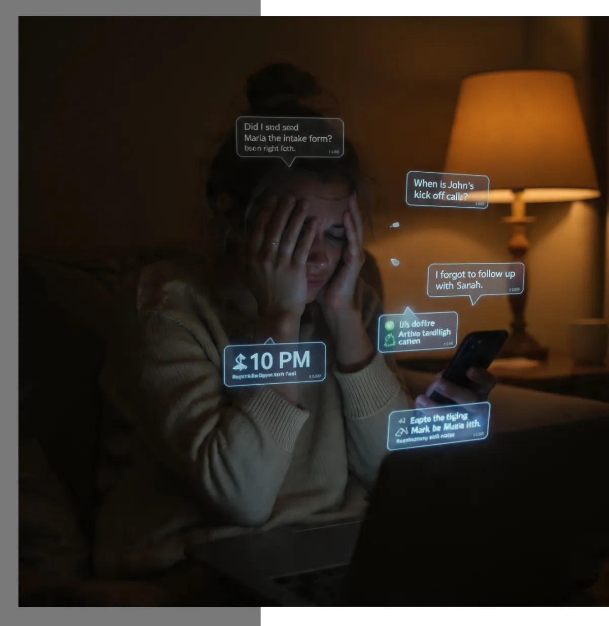 As I worked with more clients, I noticed a pattern. These talented entrepreneurs were still drowning in admin work—onboarding new clients, sending welcome emails, chasing paperwork, managing schedules.