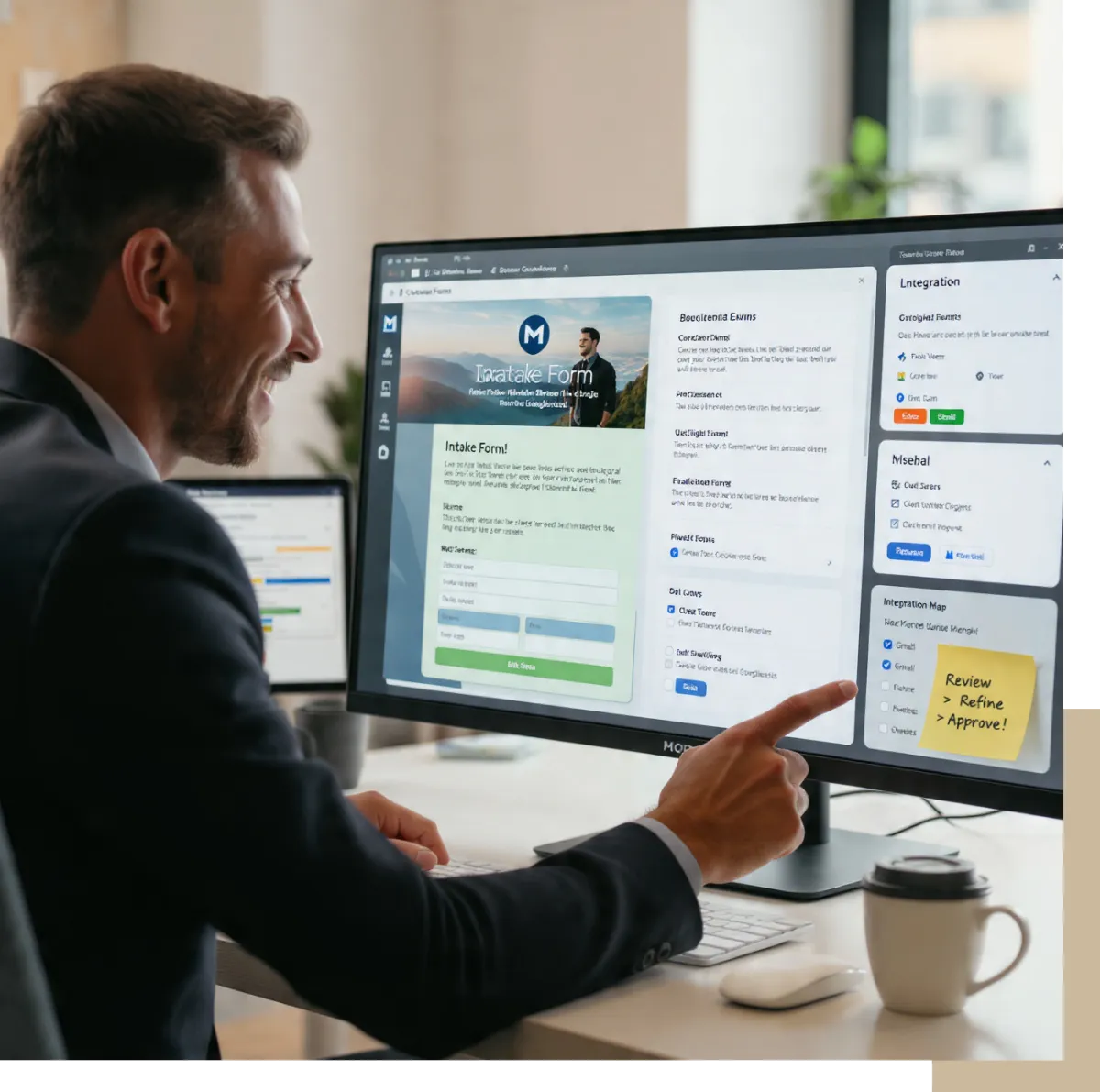 3:03 PM - A comprehensive intake form arrives in their inbox, collecting every piece of information you need—project details, goals, credentials, documents. Everything organized in one place.